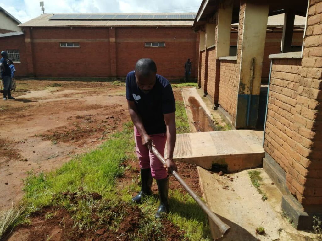 He said this today when the organization conducted a sweeping exercise at the distribution center as one way of maintaining sanity in Dzaleka camp.